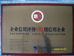 2009年12月3日,我公司被中國物流與采購聯(lián)合會評為企業(yè)信用評價AAA級信用企業(yè)。