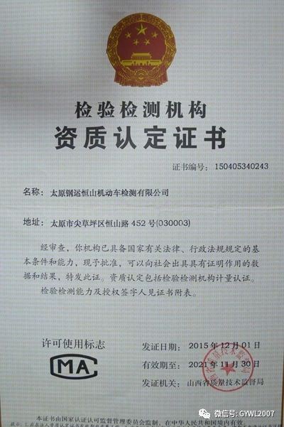 2018年11月22日,公司機(jī)動(dòng)車檢測(cè)站通過(guò)檢驗(yàn)檢測(cè)機(jī)構(gòu)資質(zhì)認(rèn)定擴(kuò)項(xiàng)評(píng)審,取得安檢1號(hào)線、2號(hào)線、綜檢1號(hào)線證書(shū)附表,標(biāo)志著我公司已****具備安檢、環(huán)檢、綜檢三檢合一的資質(zhì)許可。
