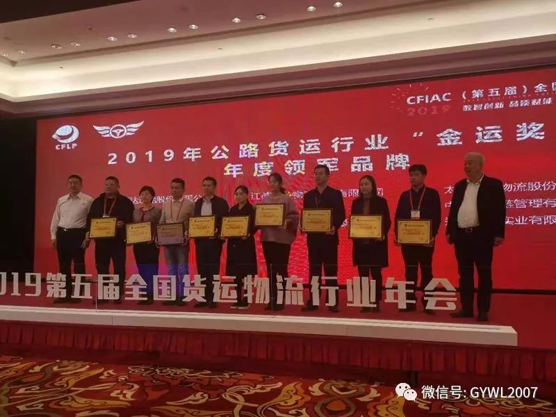 2019年12月9日—10日,公司應(yīng)中國物流與采購聯(lián)合會(huì)邀請(qǐng),參加2019年(第五屆)全國貨運(yùn)物流行業(yè)年會(huì),并被大會(huì)授予2019年公路貨運(yùn)行業(yè)“金運(yùn)獎(jiǎng)”年度領(lǐng)軍品牌榮譽(yù)。
